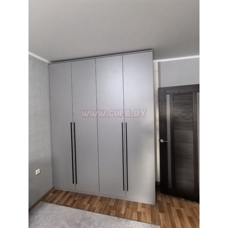 Благодаря высоте до потолка и четырем распашным дверям, шкаф максимально функционален и позволяет рационально организовать хранение одежды, обуви и аксессуаров.