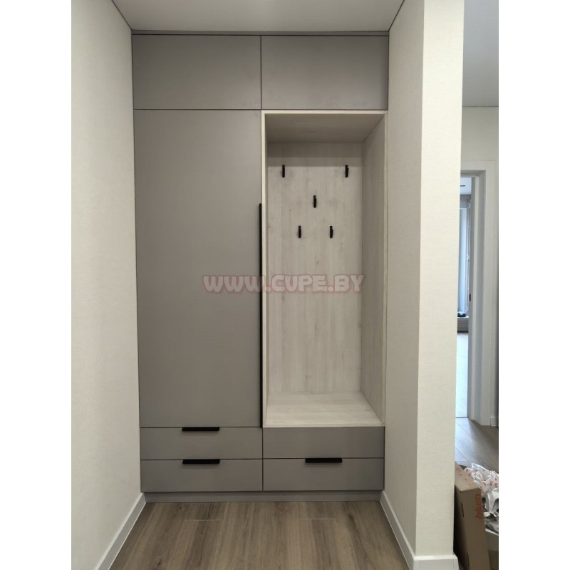 Такой шкаф идеально подойдет для прихожей или коридора, сочетая в себе функциональность и современный дизайн.