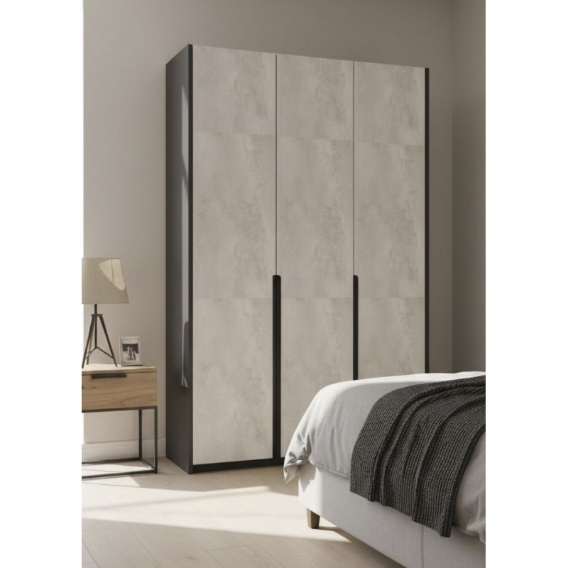 Современный трёхдверный шкаф в благородном сером оттенке с лёгкой текстурой и выразительной тёмной рамой.